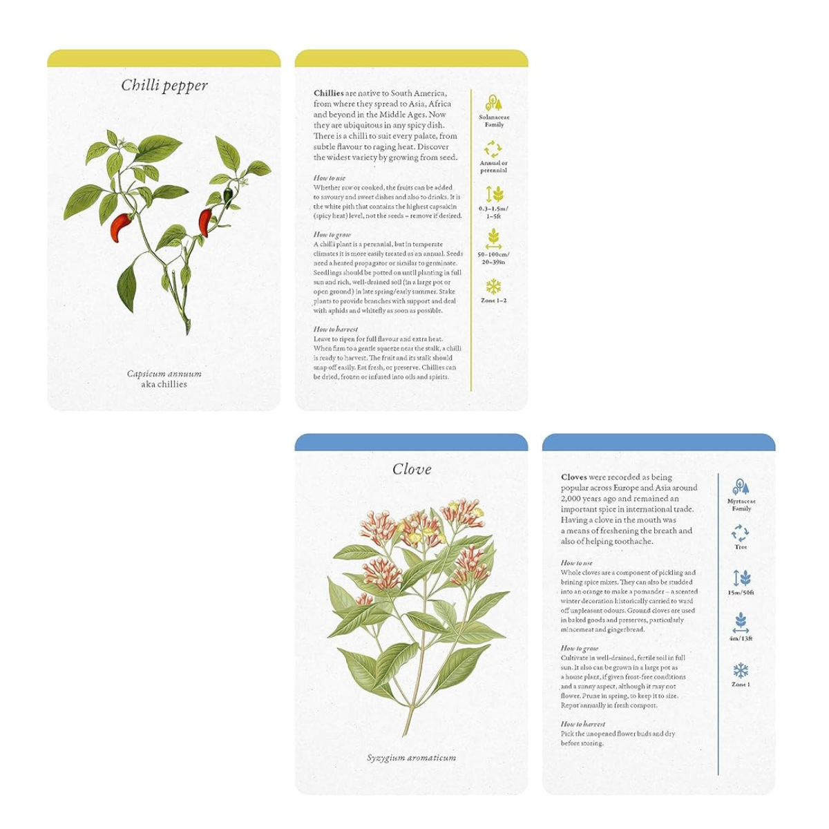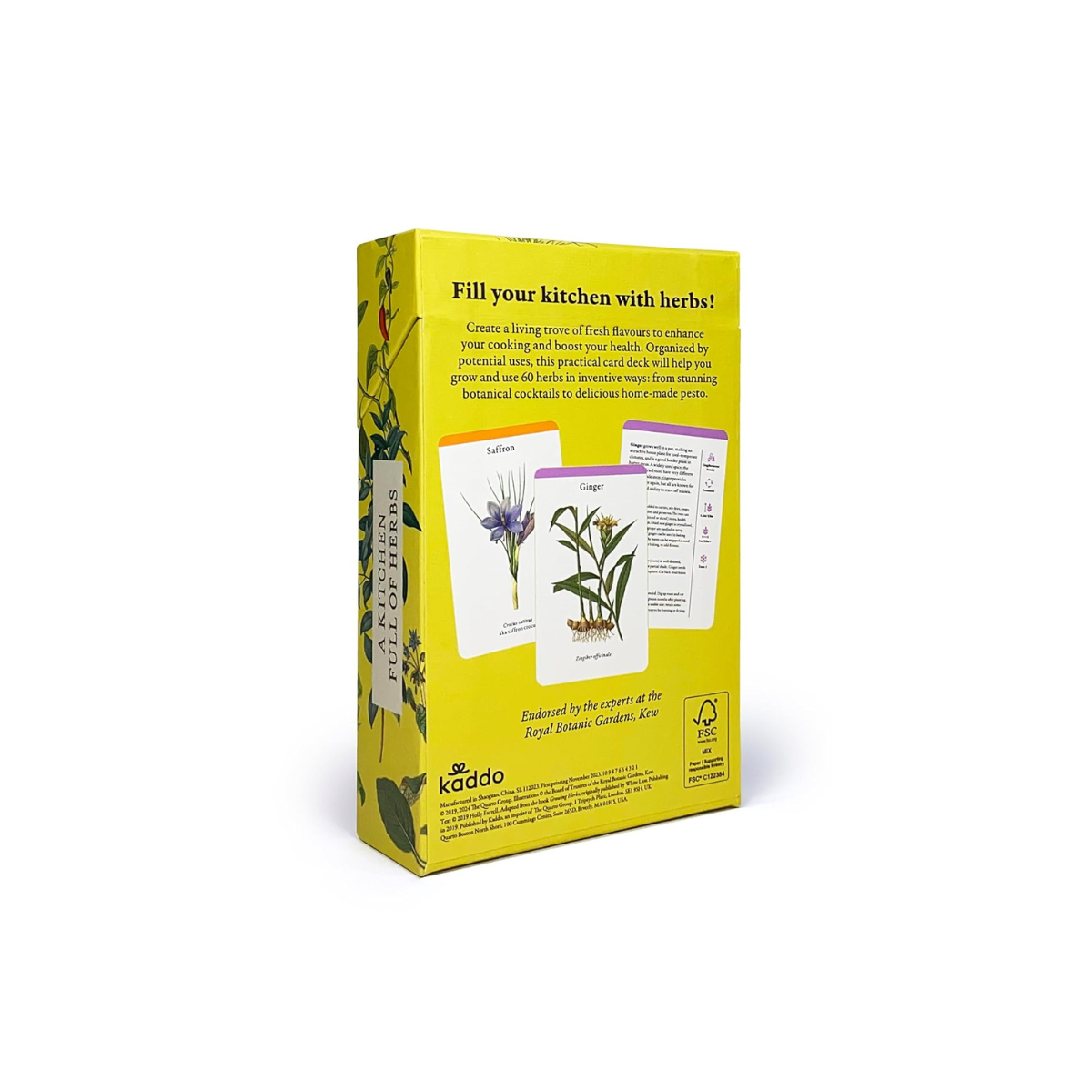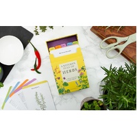 The box opens with a hinged lid to reveal 6 flavour categories and 60 illustrated herb care cards. Each card includes growing advice and tips for using the herb to enhance everyday cooking. This card deck provides all the information you need to propagate, grow, harvest, cook-and fill your kitchen with herbs.